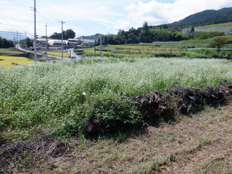 730HONEYの養蜂場は、南アルプス市櫛形西地区の中野にあります。耕作放棄地の景観保全の一環を兼ねて、ミツバチの蜜源植物となるソバの種を、地域のボランティアの方たちにご協力いただき、一町歩という広さの休耕田に種を蒔いて貰っています。